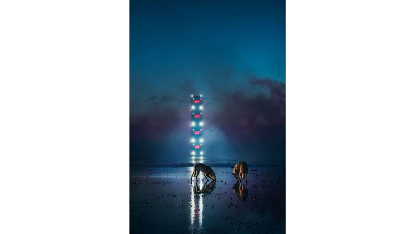 The unusual film is set in the dead of night and starts by showing the truck tower as a huge monolith glowing in the distance. As it moves forward, we see wolves in the foreground and catch a glimpse of a female driver. As the film reaches its climax, complete with smoke and lighting effects, we see that the man standing on top of the truck tower is actually Volvo Trucks’ president Roger Alm.